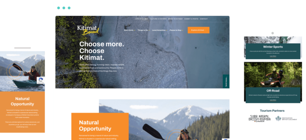We love helping communities with their workforce and resident attraction programs! The old tourism website for Kitimat did nothing for promoting the municipality’s breathtaking natural beauty. They needed a fresh web design to weave stronger visual storytelling into a rebrand.