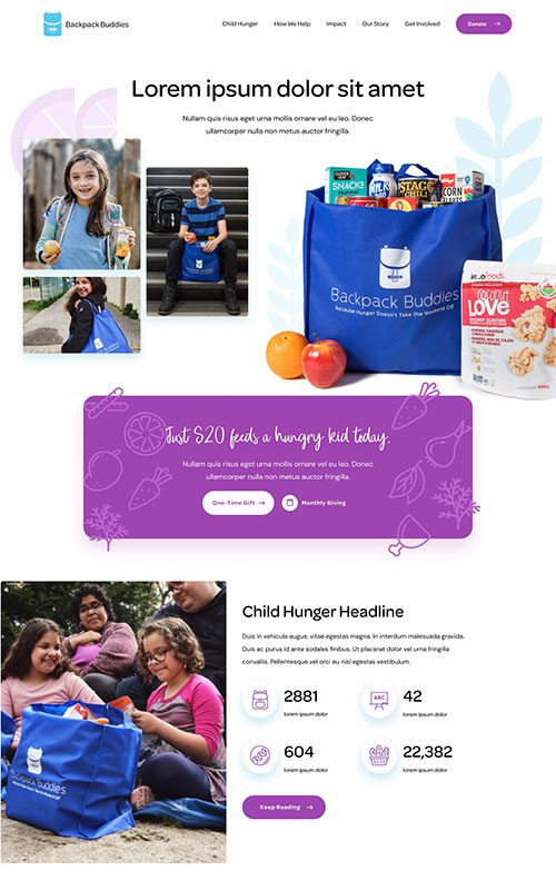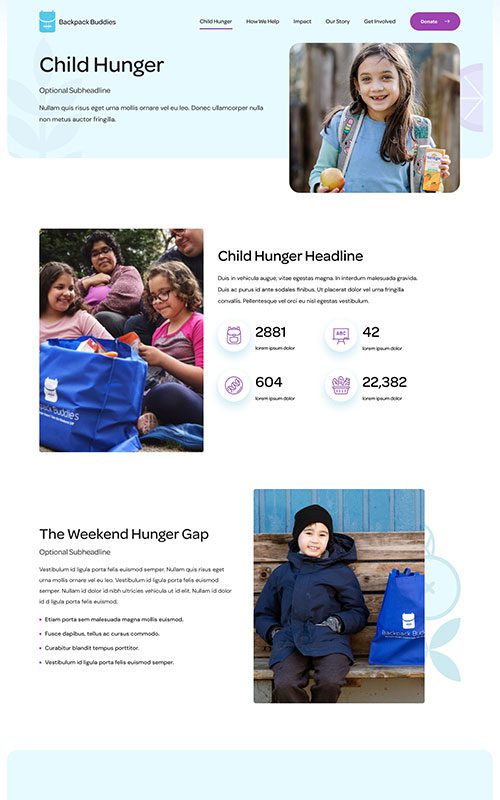 When you visit Backpack Buddies’ new website, you’re presented with the very real impact of child hunger in BC. But the site doesn’t present the issue in a sad or triggering manner. Instead, it instills hope and potential, engaging visitors to be a part of the solution by getting involved. The site is also much easier for their team to manage, so they can continue to share their meaningful stories.